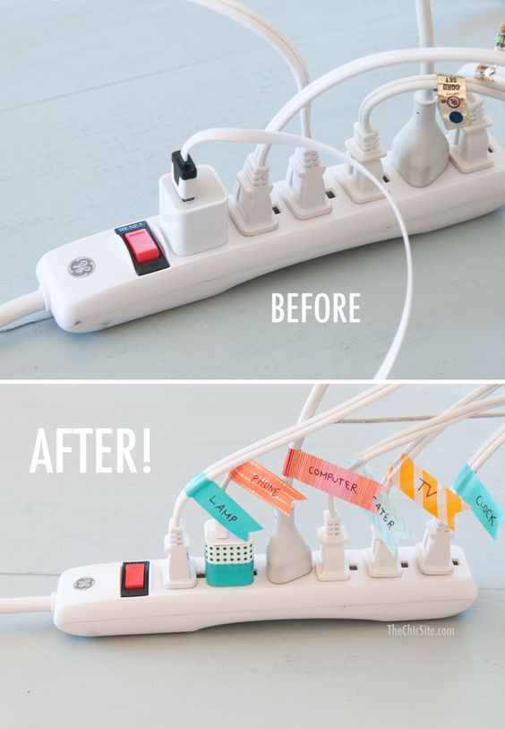 Vous débranchez au moins une fois par jour la mauvaise prise ? Avec du washi tape, vous saurez enfin à quoi correspond chaque prise !