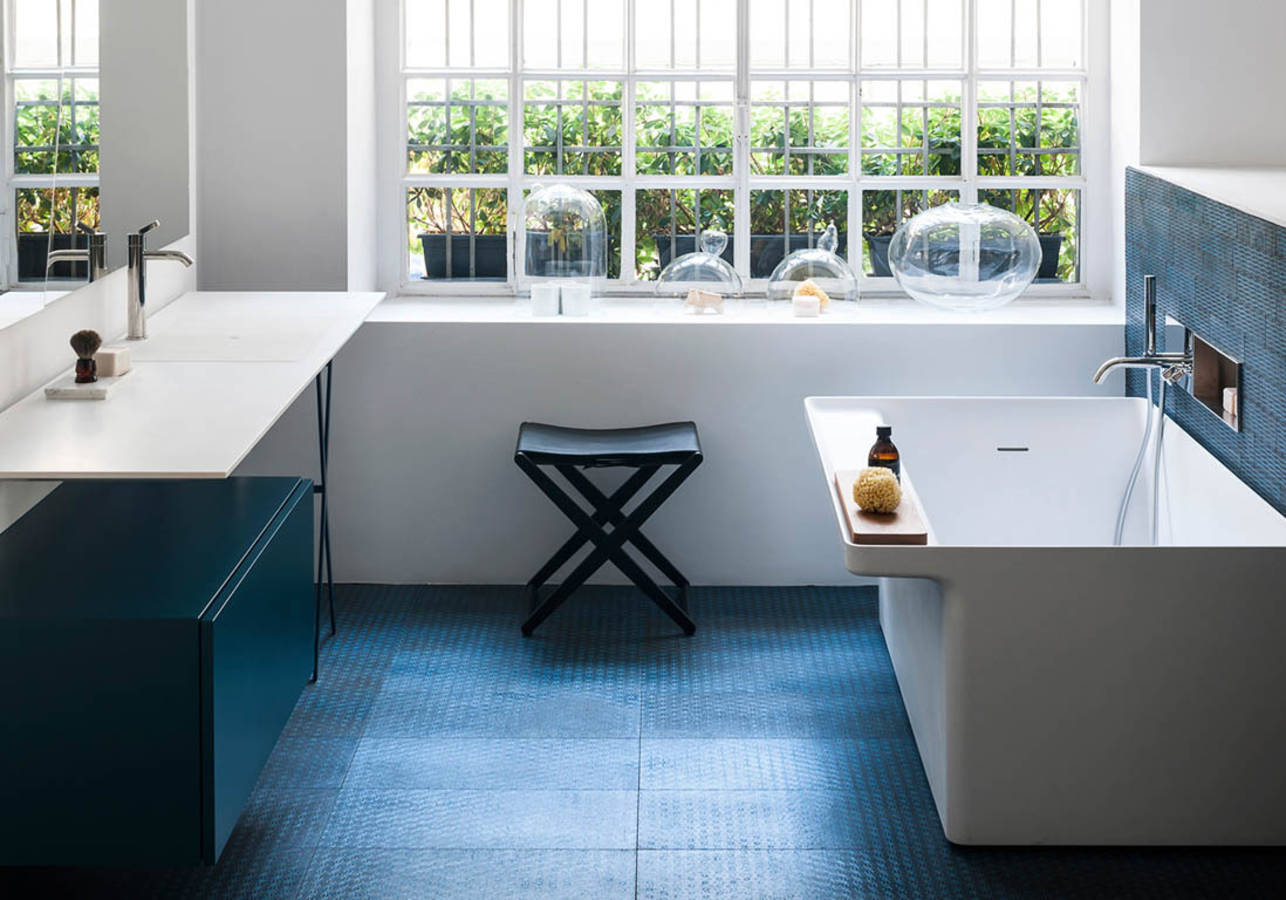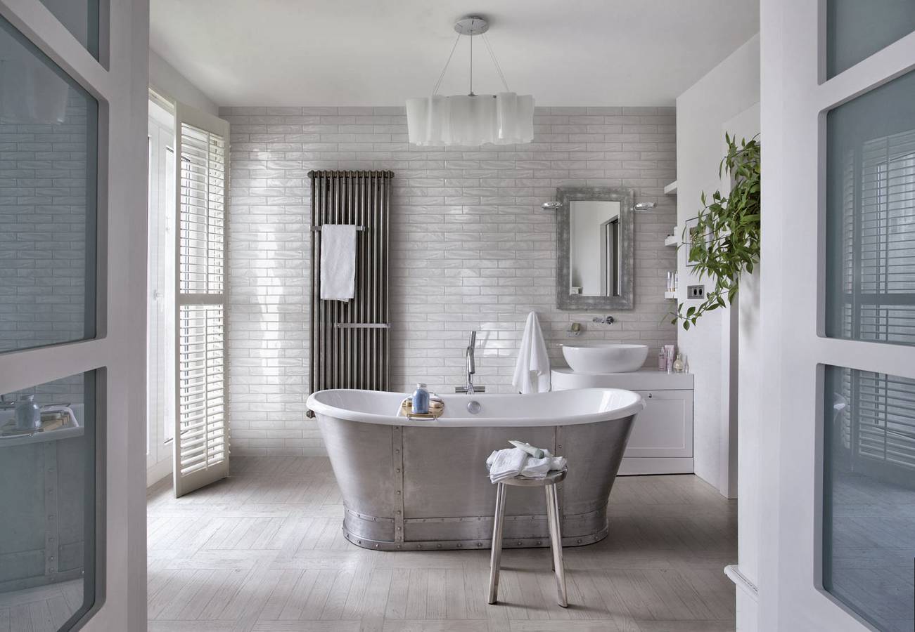 8/ Tournez-vous une baignoire îlot et n’hésitez pas à la placer au centre pour un véritable lieu de détente