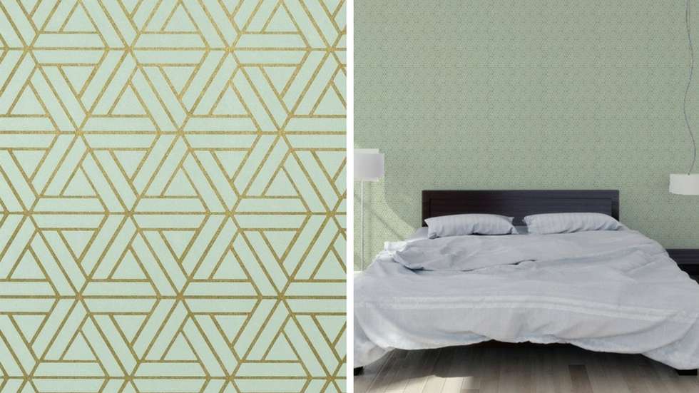 Les imprimés géographiques ont la particularité de dynamiser et d’envelopper la pièce, tout en lui donnant un aspect unique. Misez sur du vert d’eau pour susciter une sensation de douceur dans votre chambre ! Pour un style contemporain, l’association de cette teinte très claire avec des lignes de couleur or est parfaite.