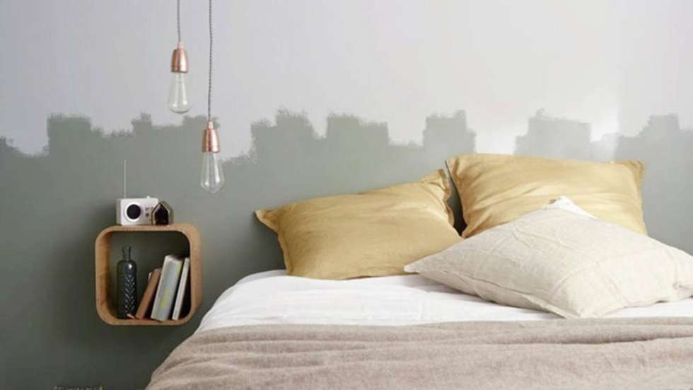 Si vous recherchez à créer une ambiance épurée dans votre chambre à coucher, peindre la moitié d’un mur peut être très efficace ! En optant pour du vert gris apaisant jusqu’à votre tête de lit par exemple, votre décor aura le mérite d’être personnalisé à votre hauteur. N’hésitez pas à laisser des coups de pinceau apparents pour encore plus d’originalité.
