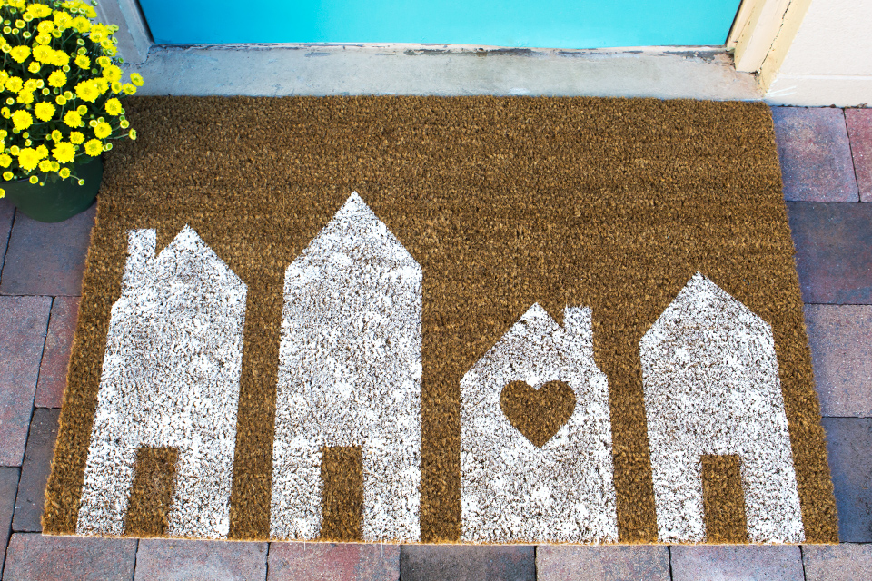 Et comment oublier le paillasson au pas de la porte ? Avec de la peinture, personnalisez-le à l’infini !