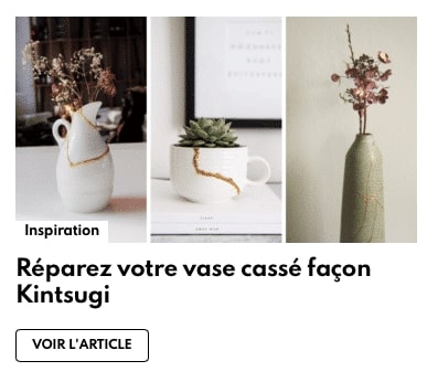 Envie d’apporter une touche japonaise subtile à votre décoration tout en restant dans une démarche de zéro déchet ? Alors, plutôt que de jeter le prochain vase que vous casserez, tentez une réparation façon Kintsugi ! Cette méthode ancestrale offrira à votre vase une touche d’élégance et lui permettra de vivre une deuxième vie à vos côtés. Cliquez sur la photo ci-dessous pour voir le tutoriel !