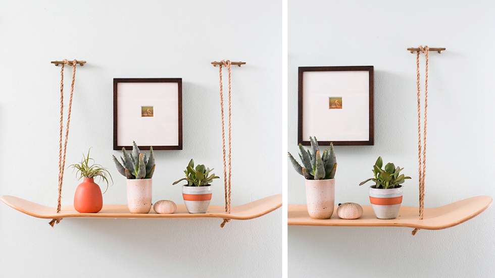 5/ Utilisez une planche de skateboard comme suspension murale