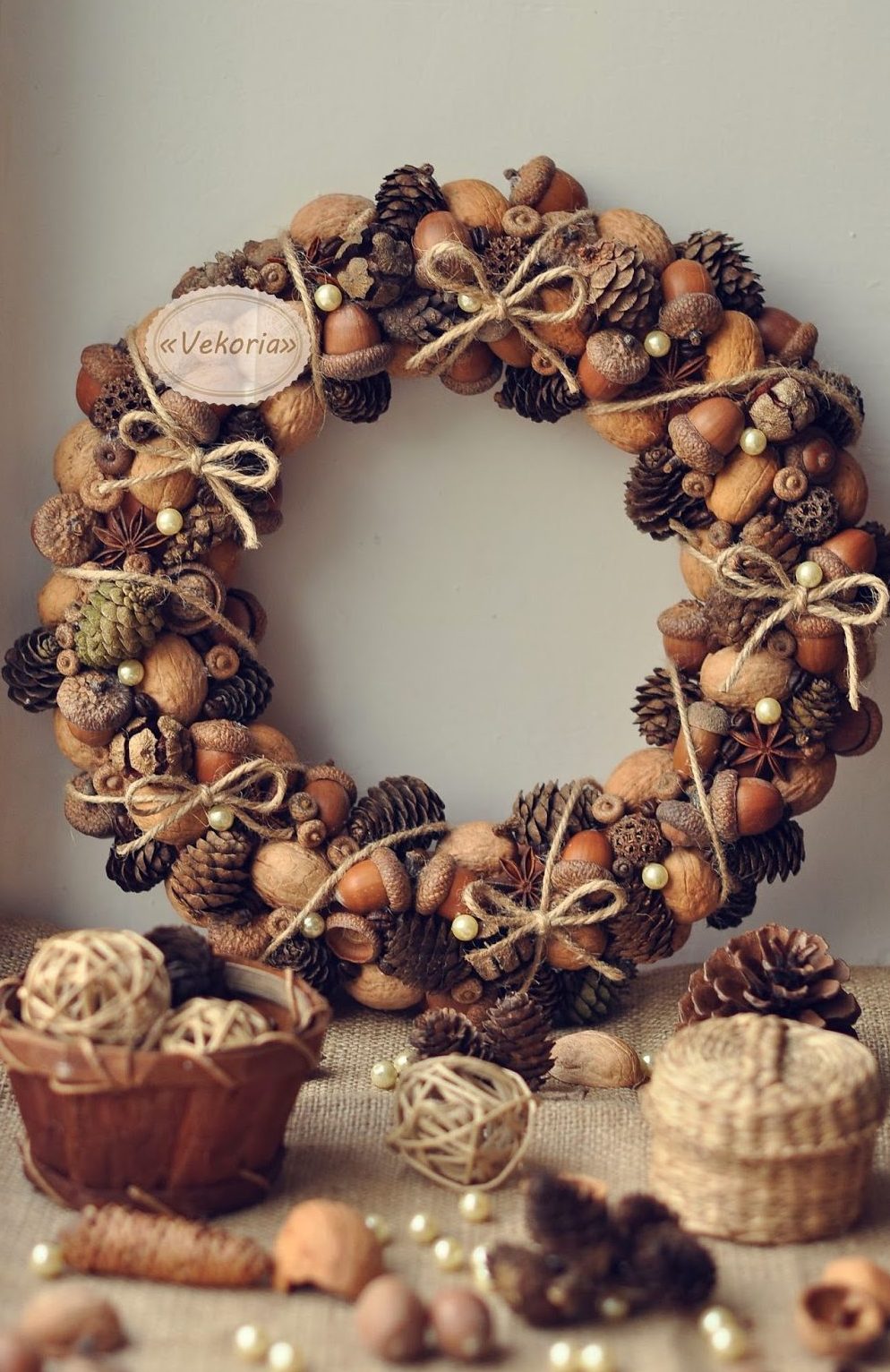 10/ Une couronne en pommes de pin et glands