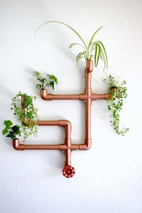 Vous ne pouvez pas faire plus industriel ! Utilisez des tuyaux de plomberie cuivrés et laissez les extrémités ouvertes pour vos plantes.