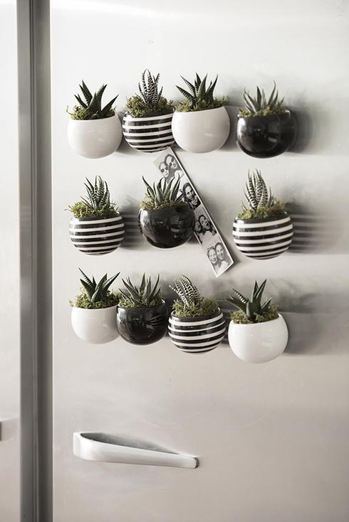 Qui aurait pensé décorer le réfrigérateur avec des plantes succulentes ? Avec des pots magnétiques, c’est possible !