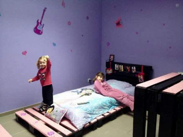 7/ Une tête de lit récup’ en palettes avec des photos souvenirs
