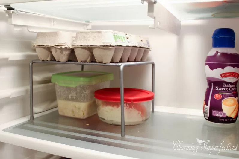 Pour plus de rangements, optimisez l’intérieur de votre réfrigérateur en y ajoutant des étagères extensibles ! Vous pouvez bien sûr en trouver de différentes tailles.
