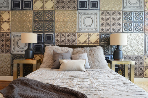 Il est possible d’apporter un peu de modernité à la décoration de votre lit ! Avec un carrelage en relief, créez une magnifique alcôve futuriste au niveau de votre tête de lit et en continu au plafond.