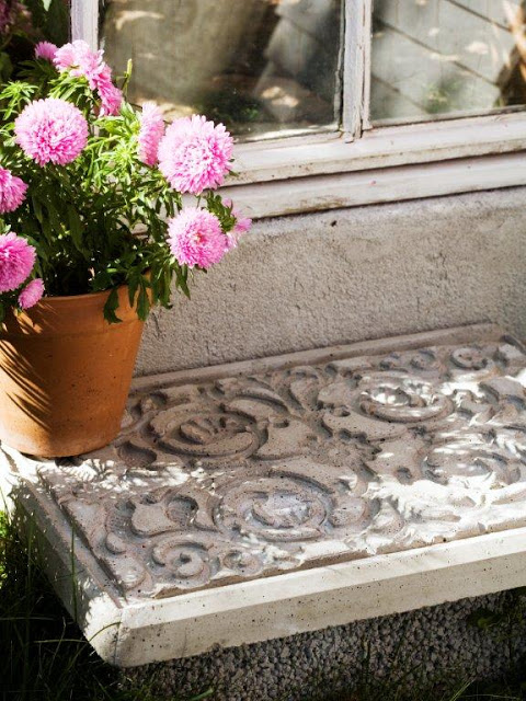 Si une pièce de portail ou de fenêtre traîne dans votre garage, donnez-lui une seconde vie en la recouvrant de ciment. Vous aurez alors une dalle unique et customisée !