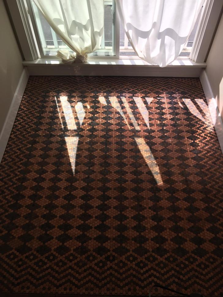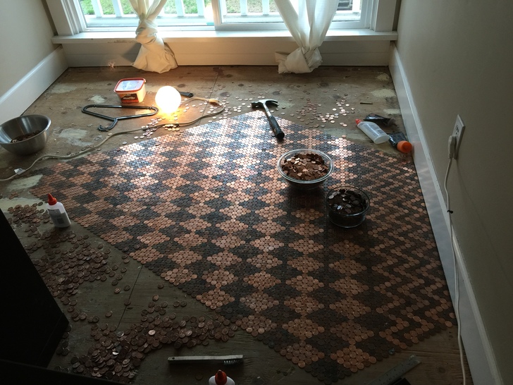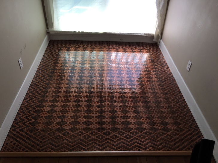 Le parquet de votre maison joue alors un rôle très important en sublimant votre décoration d’intérieur. Il existe des revêtements pour tous les styles et pour tous les goûts comme le lino ou encore le bois teinté. Bien sûr, ce n’est pas donné et c’est le prix à payer pour un intérieur chaleureux. Mais Tonya Stecyk en a décidé autrement et a trouvé une tout autre solution : des pièces de 1 centime !