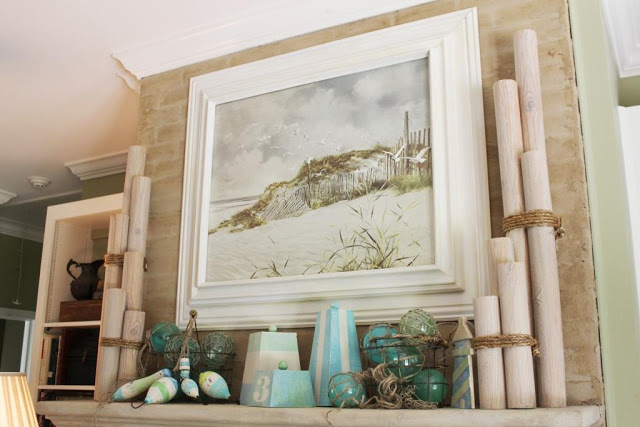 Faites entrer la plage dans votre maison avec des pilotis nautiques fabriqués à partir de frites de piscine et de papier peint effet bois.
