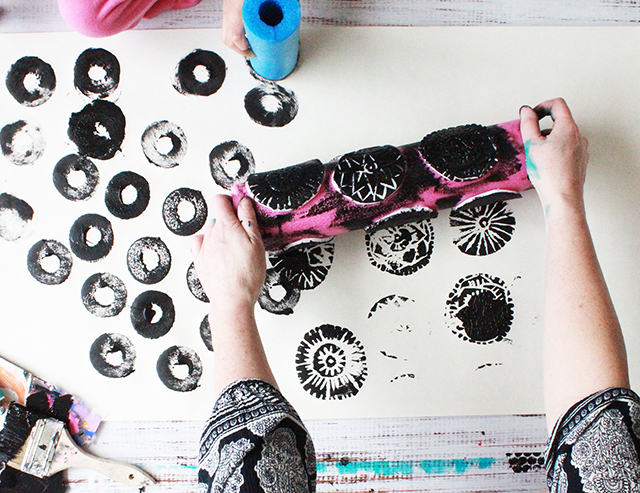 Les frites de piscine font également d’excellents rouleaux pour recouvrir votre papier peint de motifs artistiques.