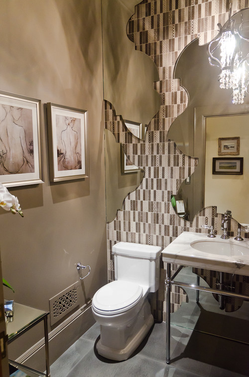 Voyez grand avec ce miroir découpé et très esthétique qui laisse découvrir un papier peint original.
