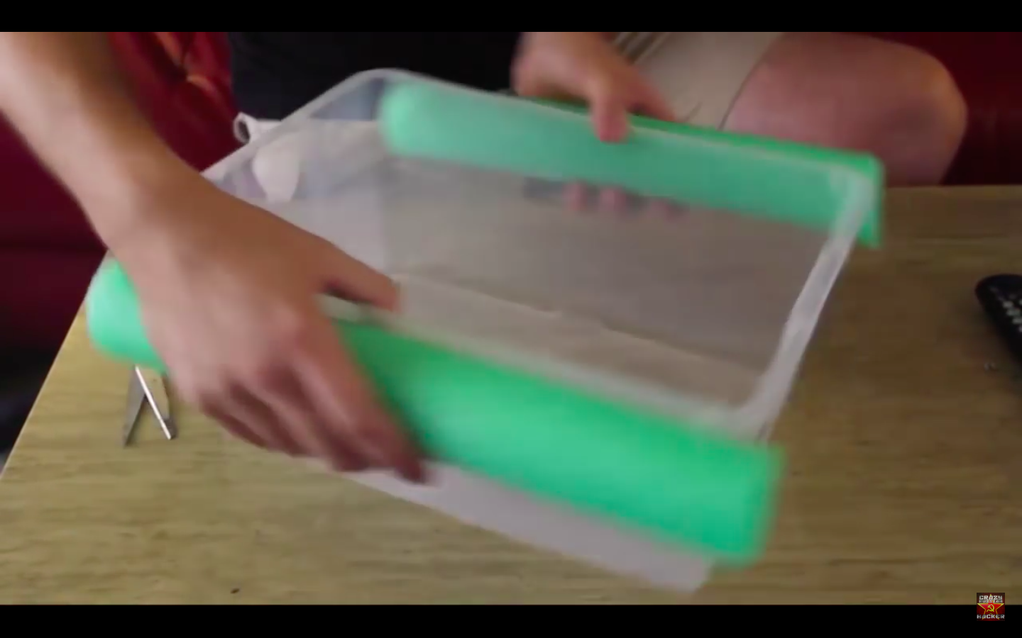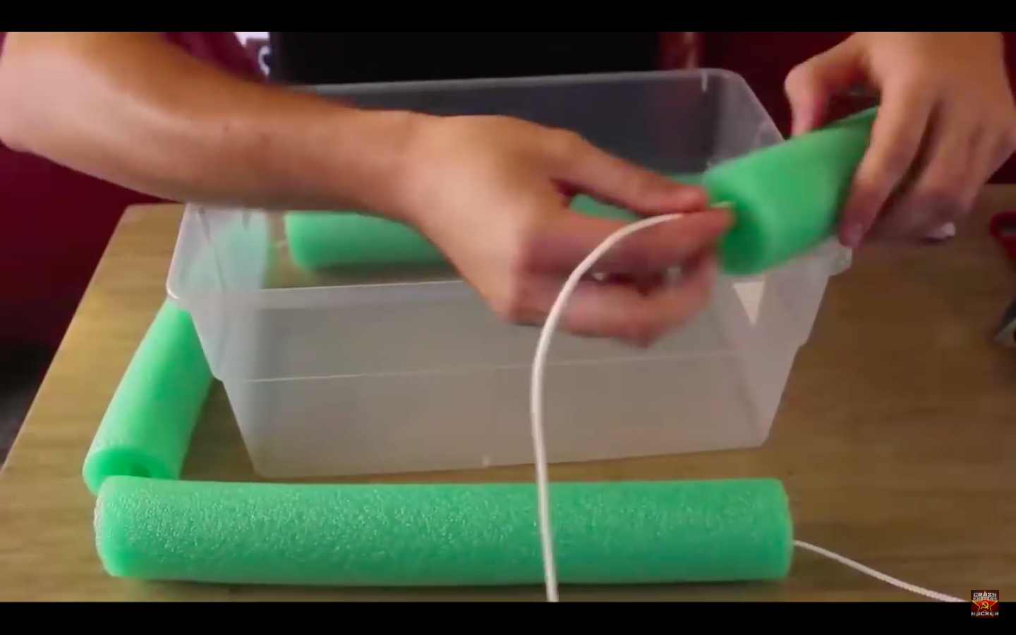 Cette dernière astuce ravira ceux qui aiment profiter d’une piscine avec une bonne boisson. Plus besoin de sortir de l’eau ! Prenez une boîte, découpez votre frite de la taille des bords de la boîte. Insérez une ficelle à l’intérieur de la frite, serrez bien fort. Placez des glaçons et des boissons et le tour est joué !