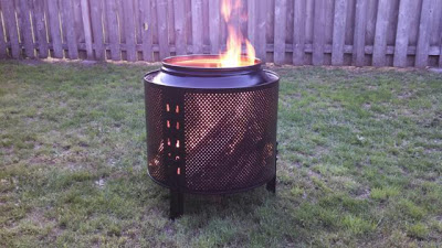 13/ Un tambour de machine à laver pour allumer un feu