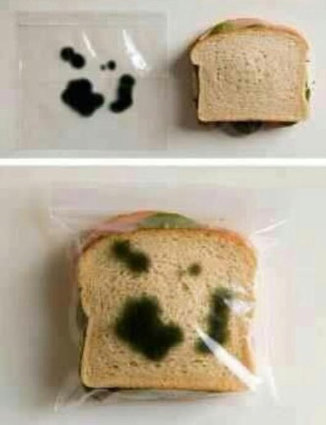8/Utilisez une nouvelle fois du colorant alimentaire sur un sac alimentaire pour créer l’illusion du pain moisi