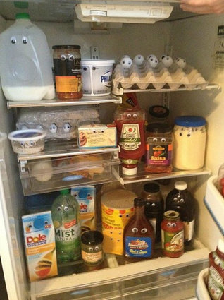 12/ Placez des yeux en plastique sur tous les aliments du réfrigérateur !