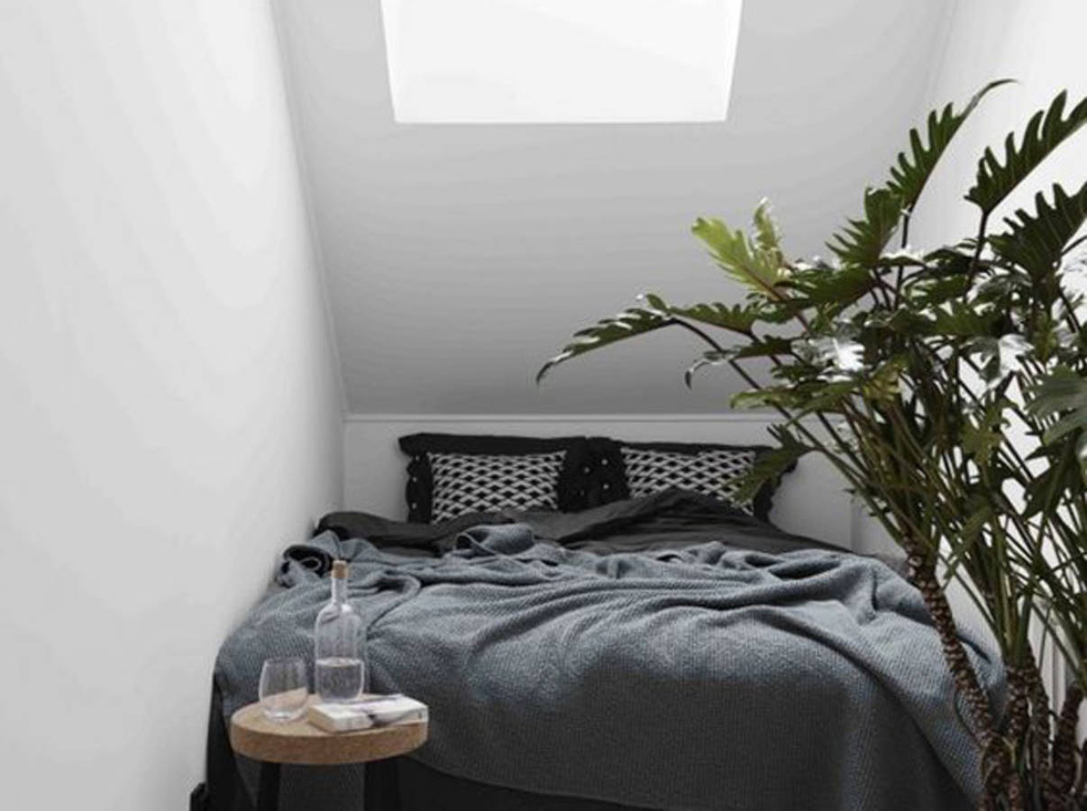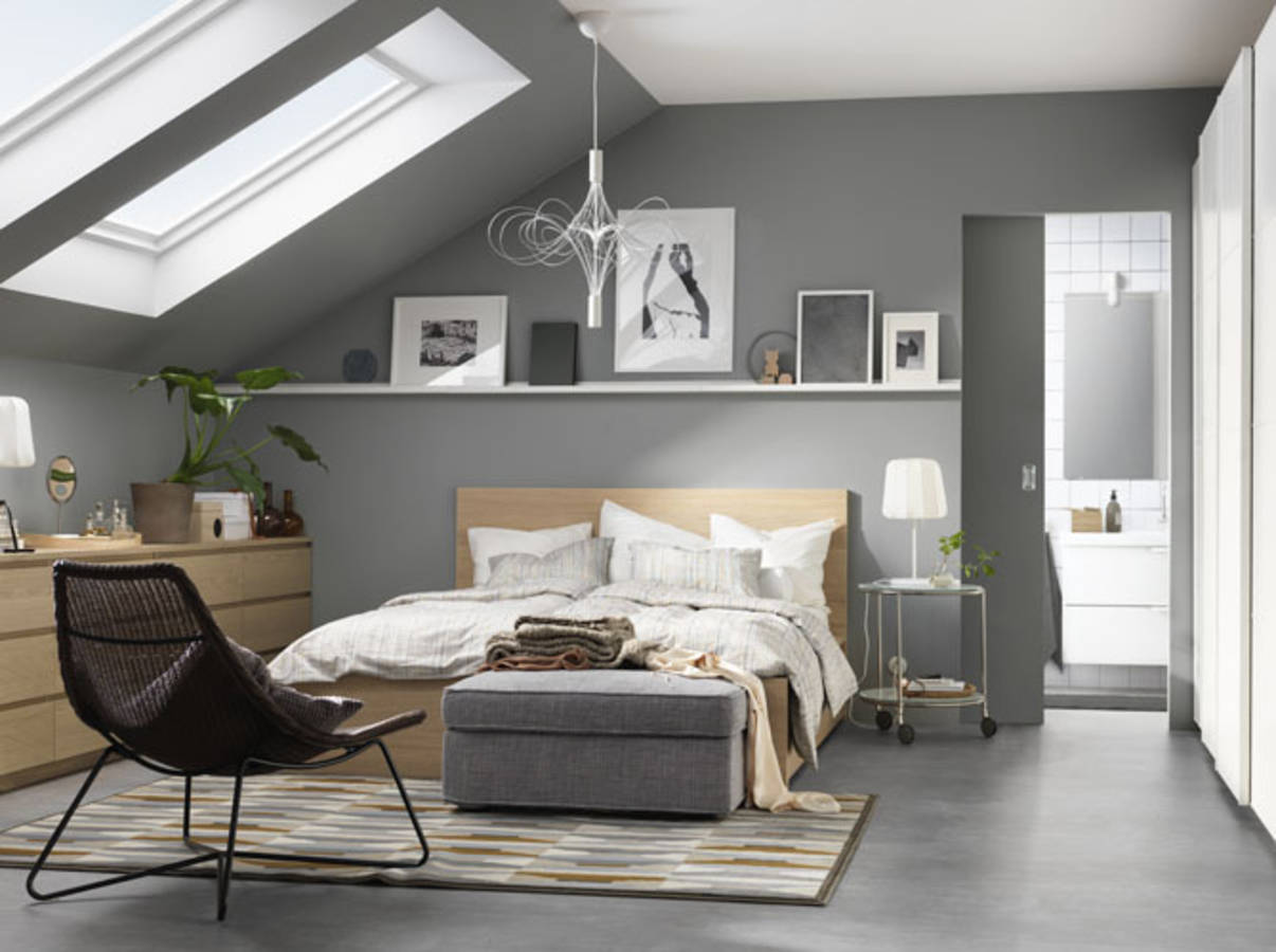 9/ Une chambre grise mais lumineuse grâce aux grandes fenêtres de toit