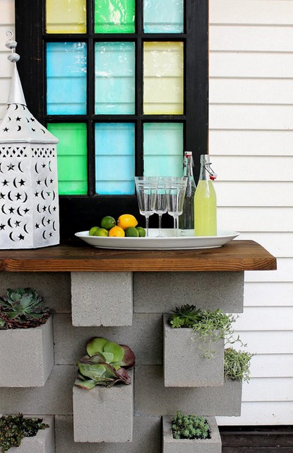 Pour embellir votre bar, les petits parpaings sont parfaits. Ces derniers servent aussi de jardinières, de quoi agrémenter davantage votre mobilier !