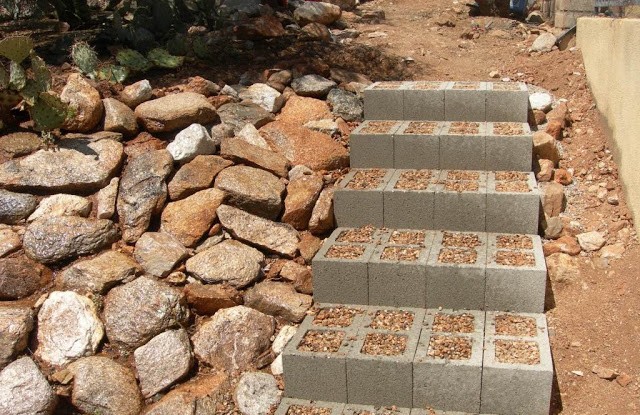 Ce serait bête de ne pas utiliser ce matériau de construction pour construire un petit escalier dans votre propriété ! N’oubliez pas de les remplir de terre pour plus de sécurité.