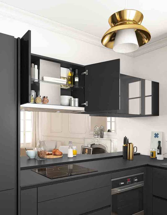 8/ Tombez sous le charme d’une crédence en miroir afin de donner l’illusion d’une cuisine plus grande