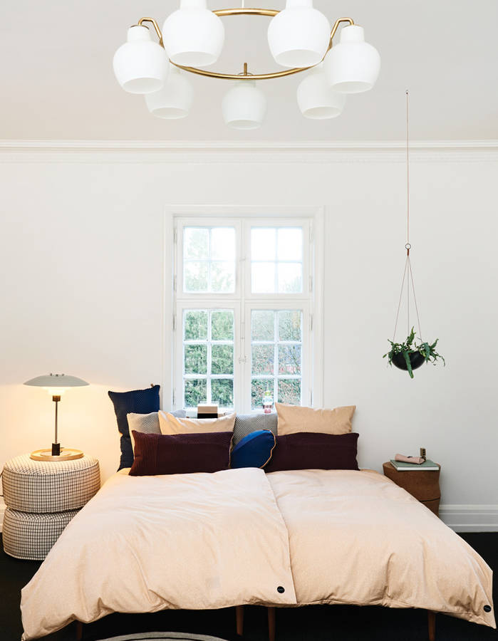 Choisir une tête de lit qui vous permet en plus de ranger vos livres, de présenter des objets décoratifs ou de poser vos lampes, c’est une belle manière d’optimiser l’espace. Un tabouret en guise de table de chevet est également une idée gain de place.