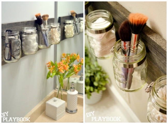 10/ Les pots Mason peuvent également être utilisés dans la salle de bain