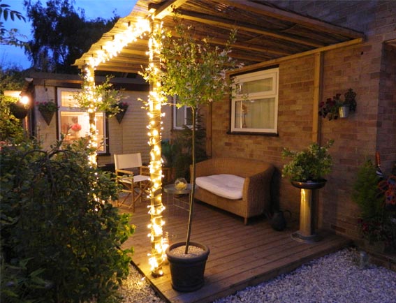 14/ Parez les poteaux de votre pergola avec des guirlandes éclatantes