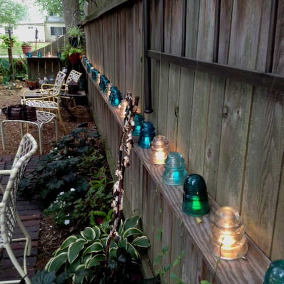12/ Disposez des petits luminaires avec isolateur sur votre clôture de jardin