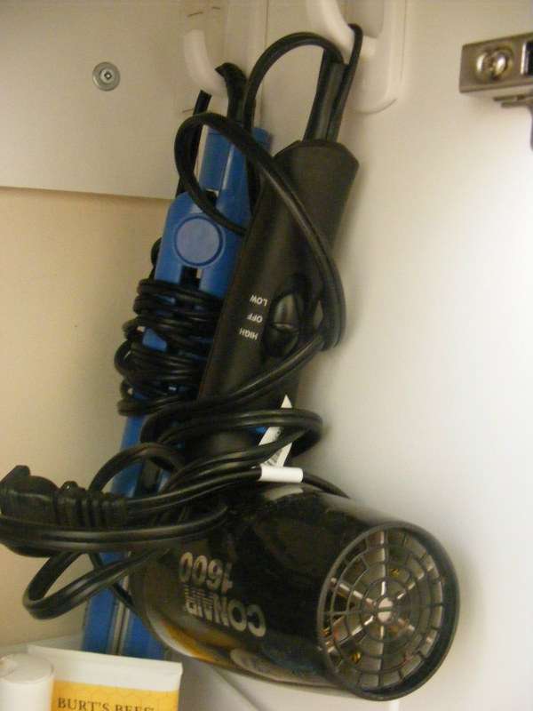 5/ Vous pouvez également placer des crochets à l’intérieur de vos placards pour optimiser l’espace et surtout pour votre matériel de coiffure