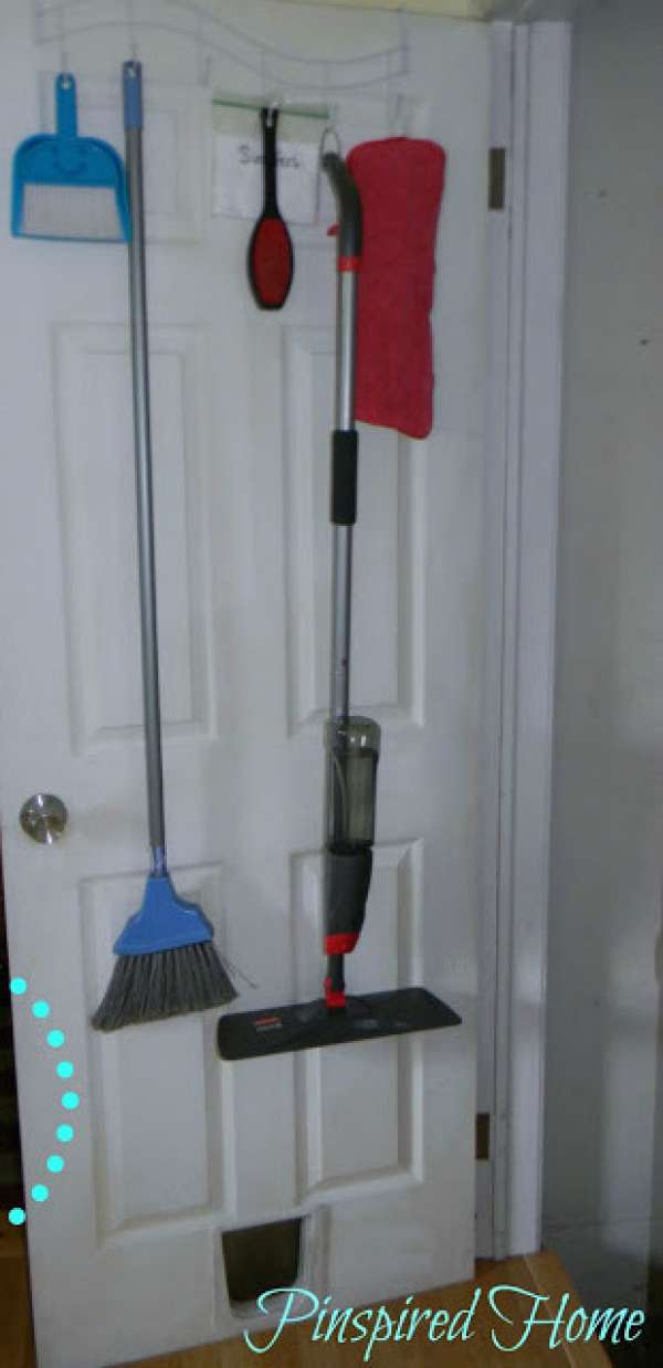 7/Exploitez l’espace libre derrière votre porte pour y ranger vos balais