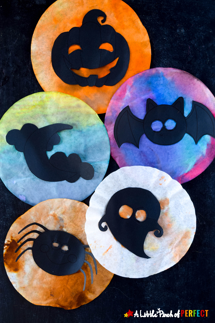 Donnez une seconde vie à de vieux filtres à café avec de la peinture ! Vos enfants n’auront plus qu’à coller leur motif préféré avant de les poser sur la fenêtre, comme ici.