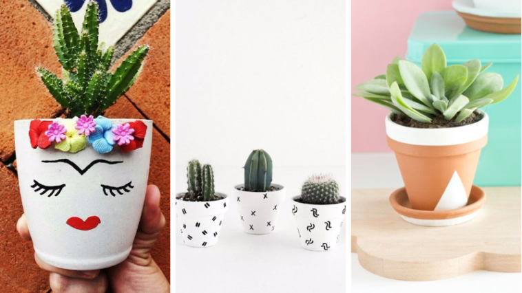 Les pots (particulièrement en terre cuite) ont l’avantage d’être facilement personnalisables, alors pourquoi s’en priver ? Si vous aimez l’originalité, la customisation, prenez un pot en main, un peu de peinture et lancez-vous ! Vos plantes seront ainsi sublimées et vous obtiendrez une belle œuvre d’art. En plus de la peinture, vous pouvez aussi songer à les personnaliser avec un peu de corde ou de perles, tout est envisageable ! Remarquez sans plus attendre la sélection de personnalisations que nous avons dégoté.