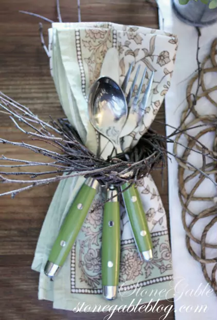 17/ Pour un repas forestier, utilisez des brindilles pour faire un rond de serviette