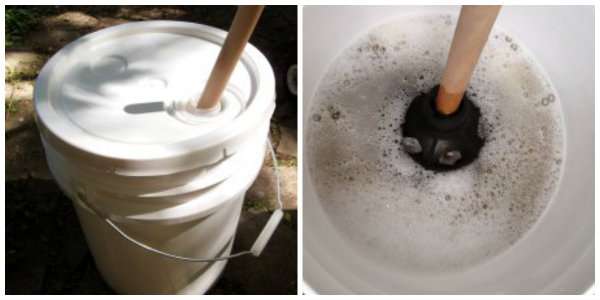 12/ Une machine à laver manuelle avec un couvercle et une ventouse