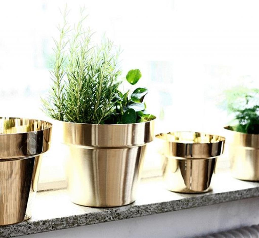 4/ De magnifiques pots en fleurs en or chromé grâce à de la peinture métallique