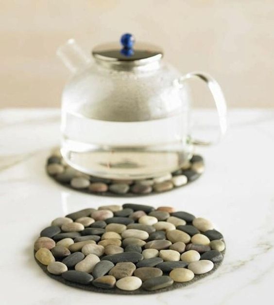 16) Des galets collés sur un vieux CD