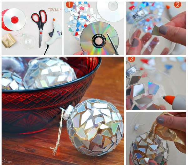 8) Et pourquoi ne pas vous servir de vos vieux CDs pour sublimer des boules de Noël ?