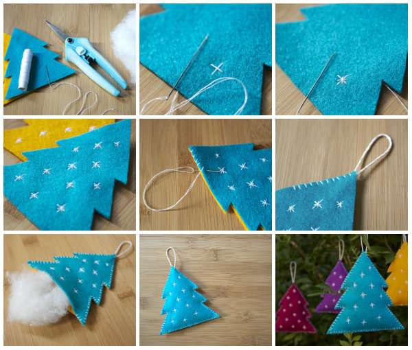 12) Une jolie décoration en forme de sapin à réaliser avec de la feutrine