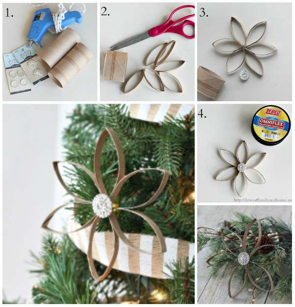 16) Transformez vos rouleaux de papier toilette en une magnifique étoile décorative pour votre sapin