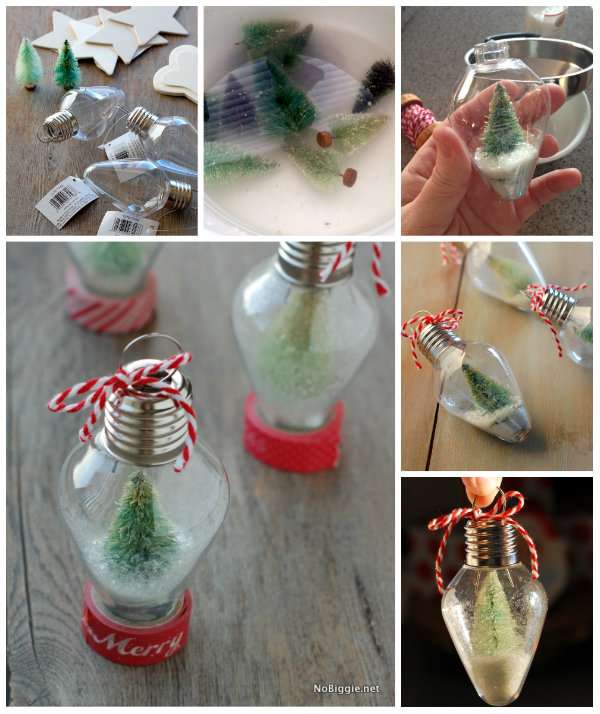 17) Réutilisez vos ampoules usagées pour en faire des boules à neige à accrocher dans le sapin