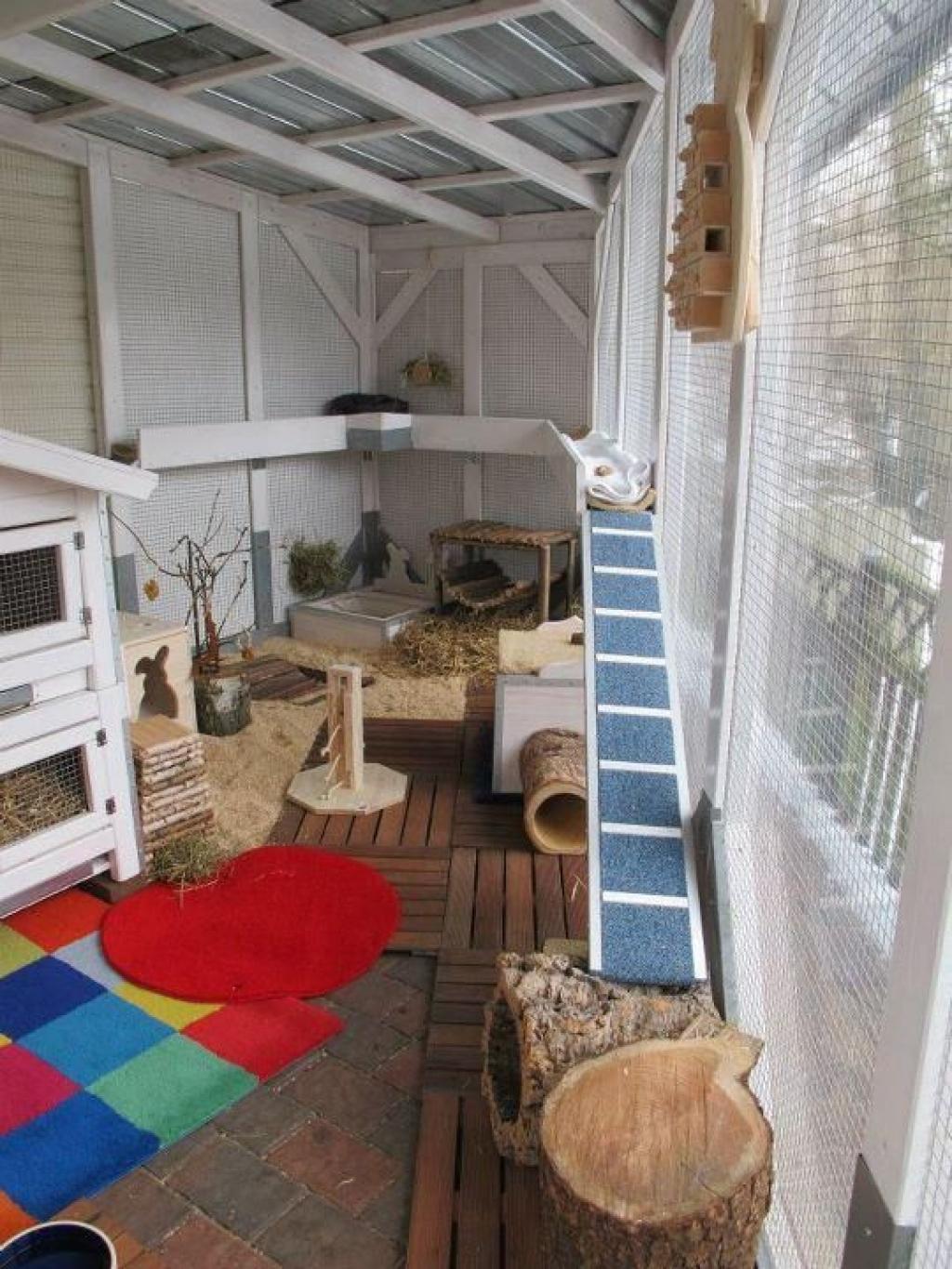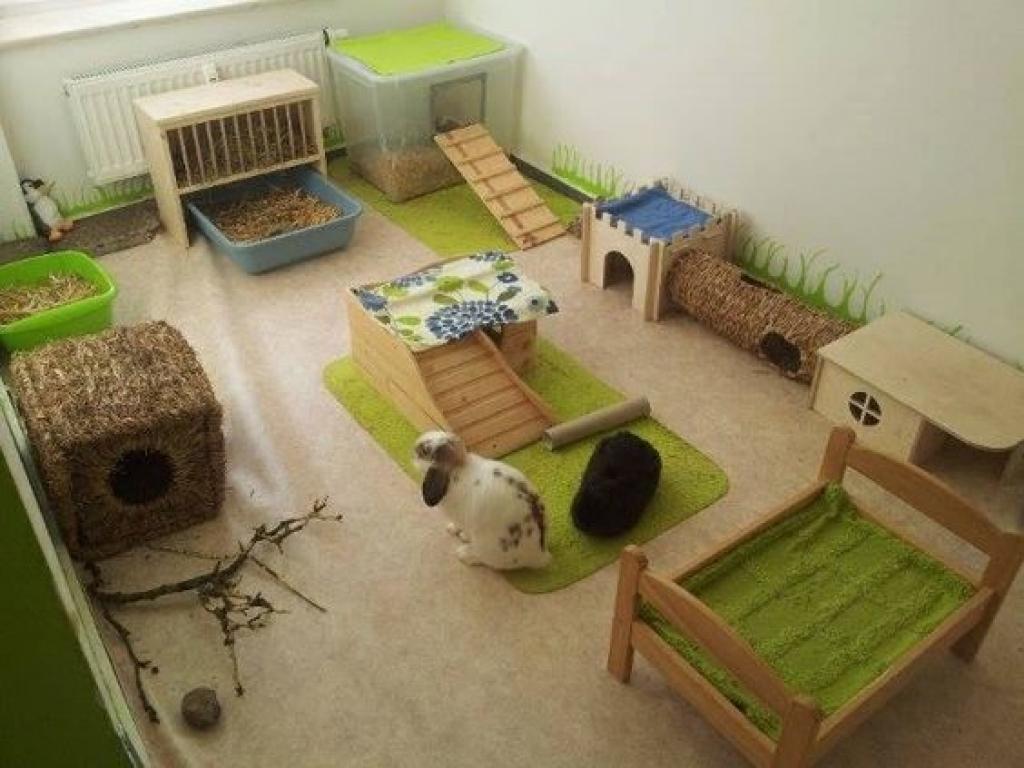 Inspirez-vous de cette image pour aménager l’habitat de votre lapin ! Tous ces meubles, en passant par une source de chaleur et de l’herbe sèche en quantité feront le bonheur de votre animal de compagnie.