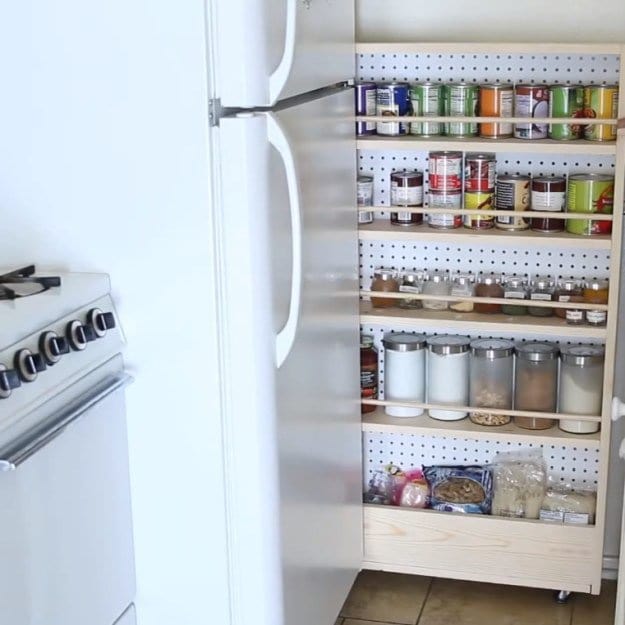 Vous avez beau avoir de multiples placards muraux dans votre cuisine, les rangements manquent toujours. Optimisez alors les lieux, comme l’espace entre le réfrigérateur et le mur, en construisant une étagère mobile !