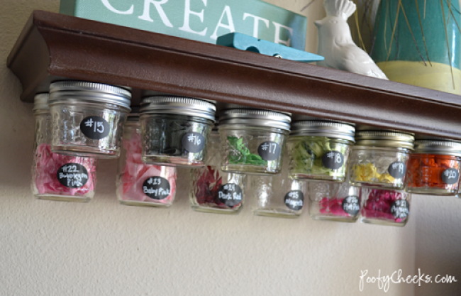 8/ Fixez des petits pots Mason sous votre étagère