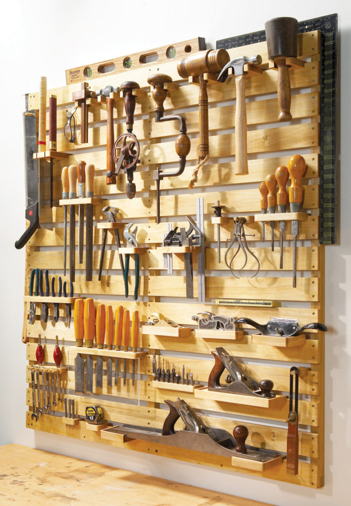 11/ Organisez votre garage et vos outils grâce à une planche faite de palettes