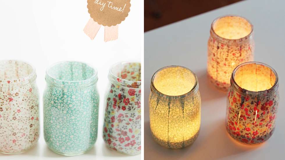 Avec ce projet, décorez vos petits pots en sublimes photophores ! Veillez cependant à ne pas utiliser de vraies bougies, le tissu étant la matière principale de cette déco.