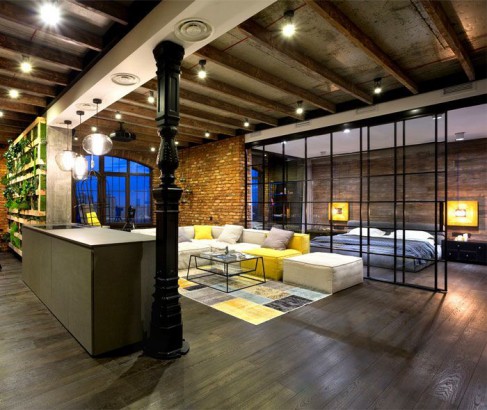 8/ Un loft avec une belle ambiance chaleureuse grâce aux luminaires et aux meubles de salon