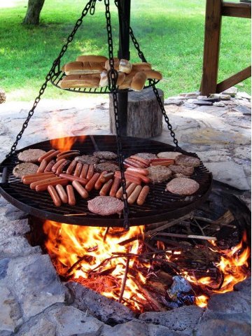 11/ Le barbecue suspendu idéal pour faire cuire les saucisses et les petits pains en même temps