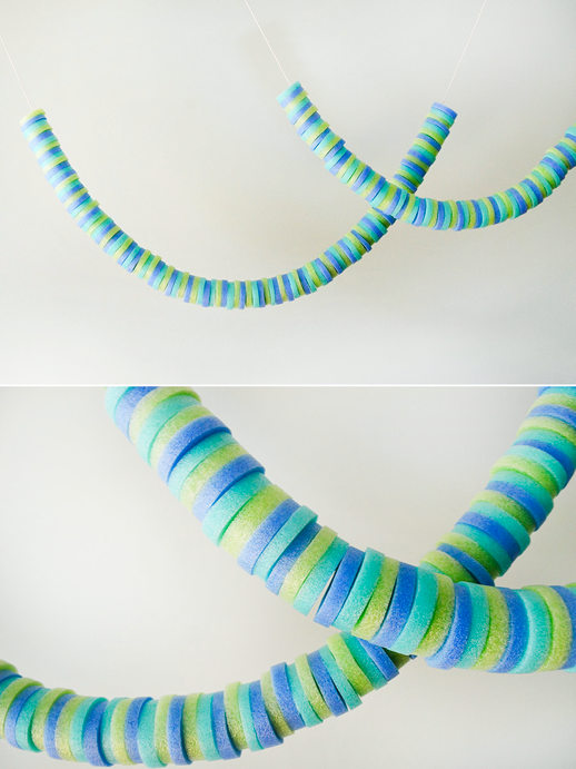 Et tout ce qu’il vous faut pour les créer, c’est du ruban adhésif de différentes couleurs et évidemment, des frites de piscine !